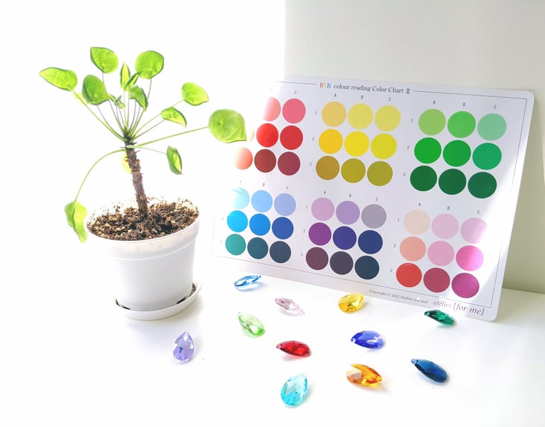 A session to decipher your overall balance from various angles such as actions, thoughts, and relationships, to reconfirm your feelings and situation, to look deeper into yourself, and to find the color supplement you need for your current situation.